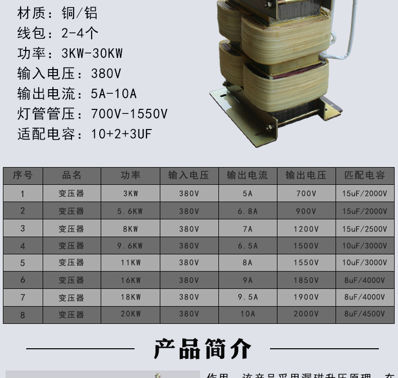 產(chǎn)品規(guī)格:品牌:高瓊材質(zhì):銅/鋁功率:3kw-20kw均可訂制輸入電壓:380v輸出電流:5A-10A燈管管壓:700v-1550v適配電容:10+2+3UF適用范圍:涂裝行業(yè)、印刷行業(yè)、木工家具行業(yè)、PBC電路板行業(yè)、醫(yī)療、玻璃粘貼等UV油墨、UV漆、UV膠等固化或PS曬版等領(lǐng)域。